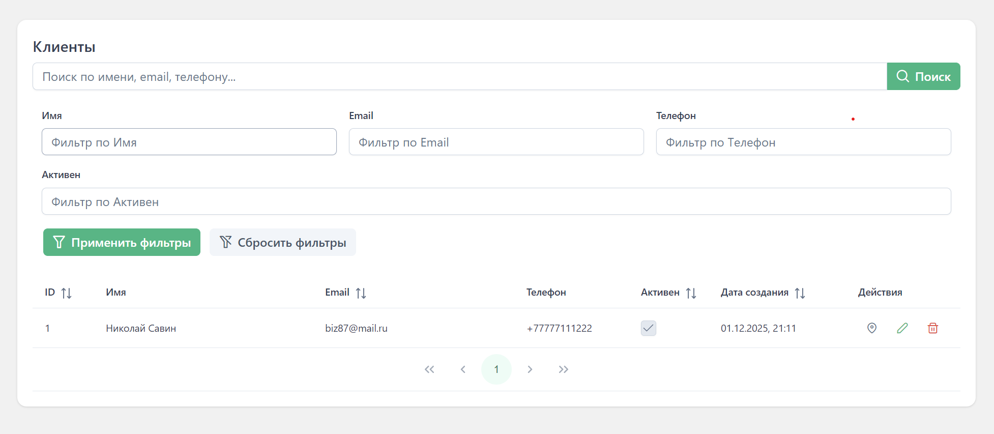 Полноценное управление клиентами из админки