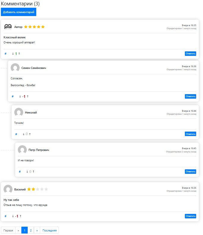 Вид по умолчанию (при наличии Bootstrap и установленном dateAgo для форматирования дат):