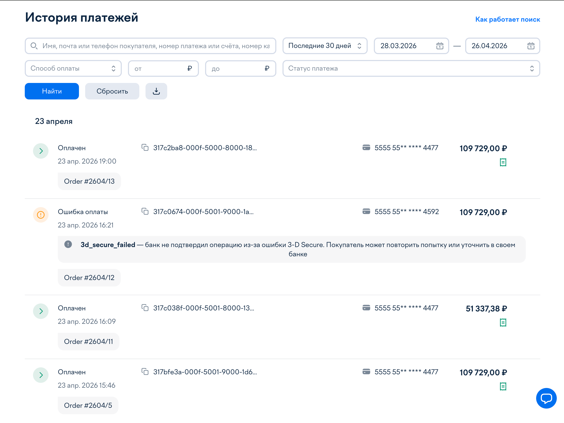 Номера тестовых карт и правила 3-D Secure — в документации ЮKassa. Срок действия — любая дата позже текущей. CVC и код подтверждения можно вводить произвольными цифрами, как описано у ЮKassa.