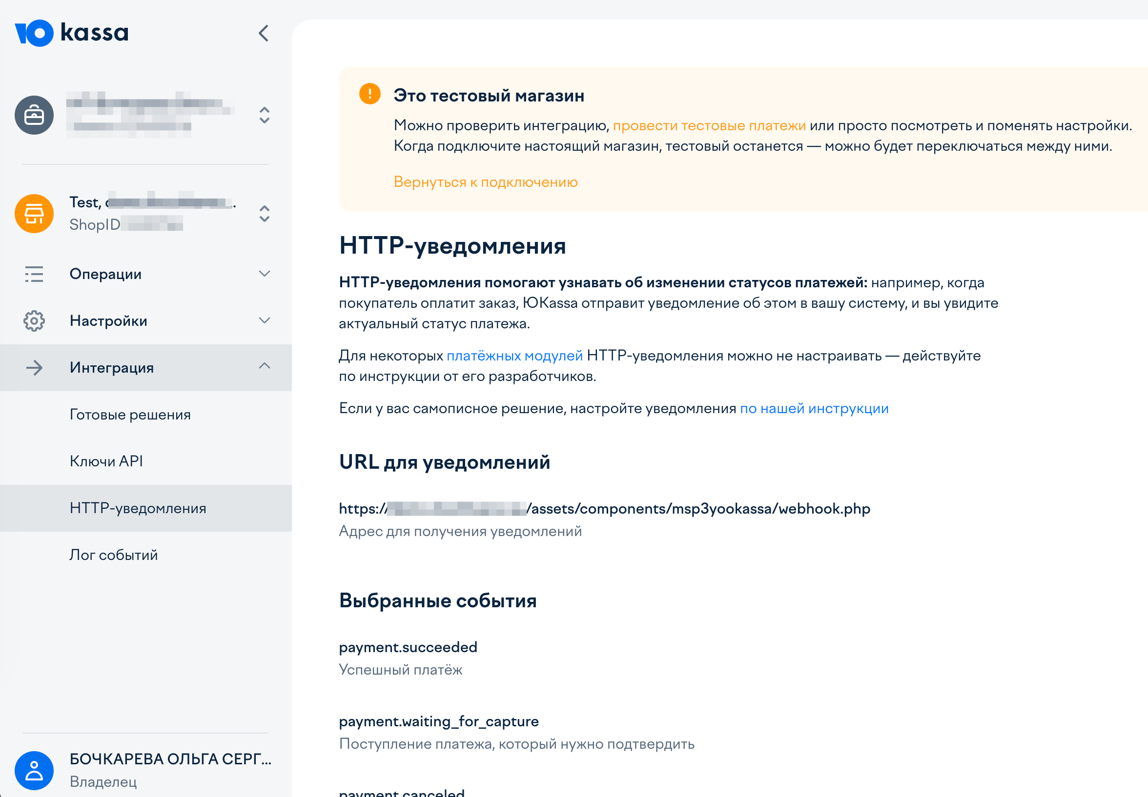 В кабинете ЮKassa: Интеграция → HTTP-уведомления (настройки). URL для сайта, например: