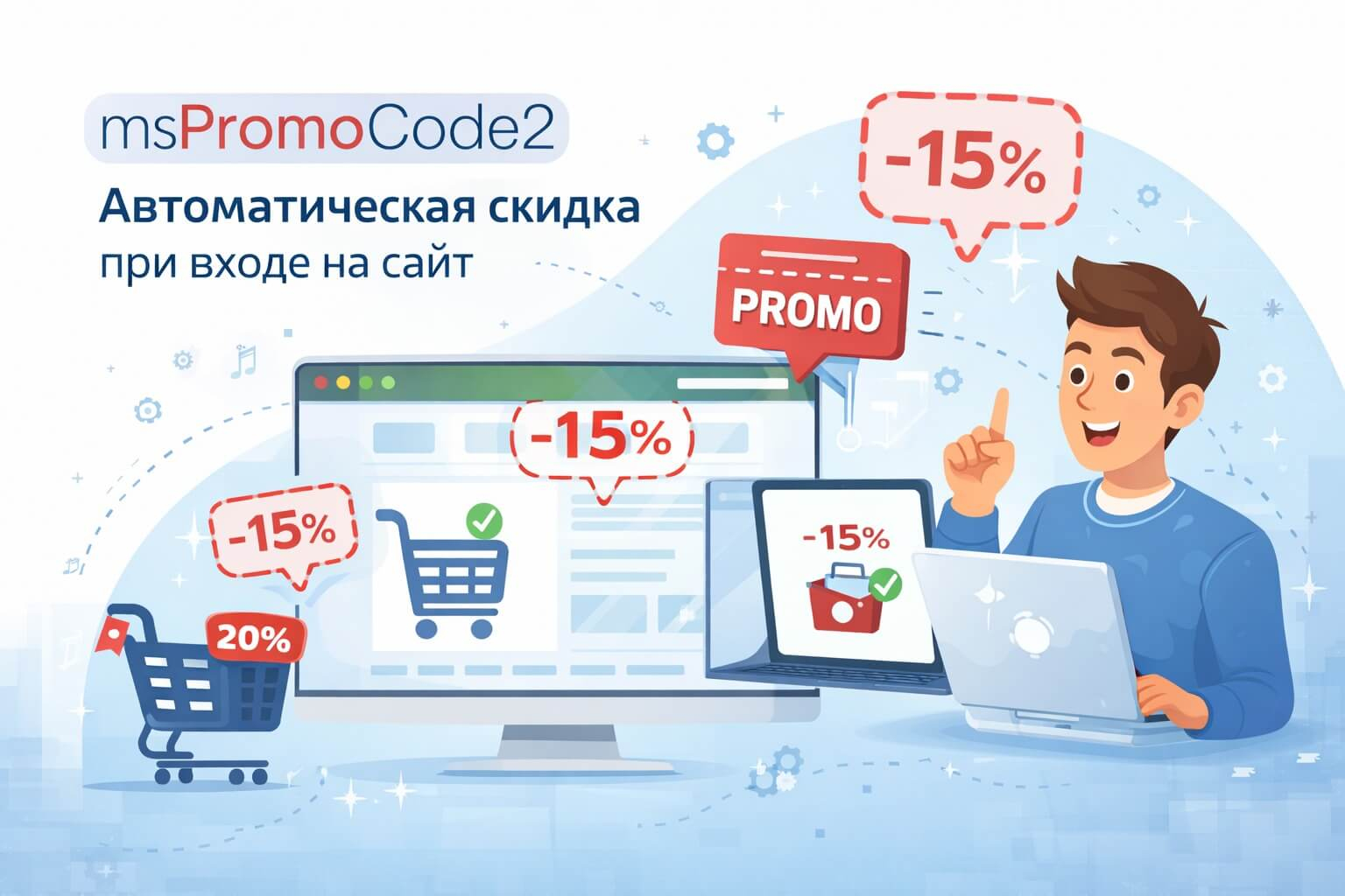 Мало кто знает, что компонент msPromoCode2 можно использовать не только как классическую систему промокодов, но и как полноценную глобальную скидку для всего сайта – применяемую автоматически, без необходимости ввода кода на странице оформления заказа.