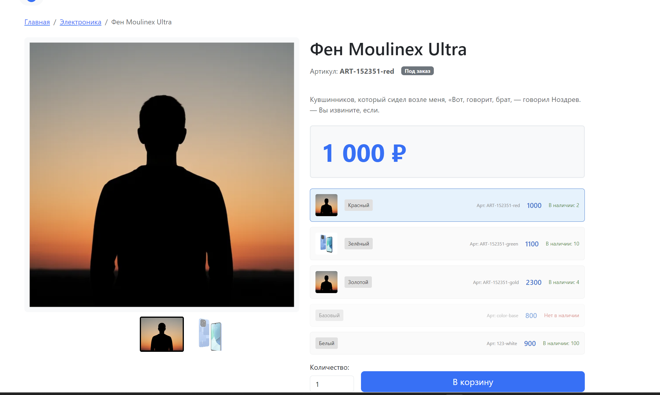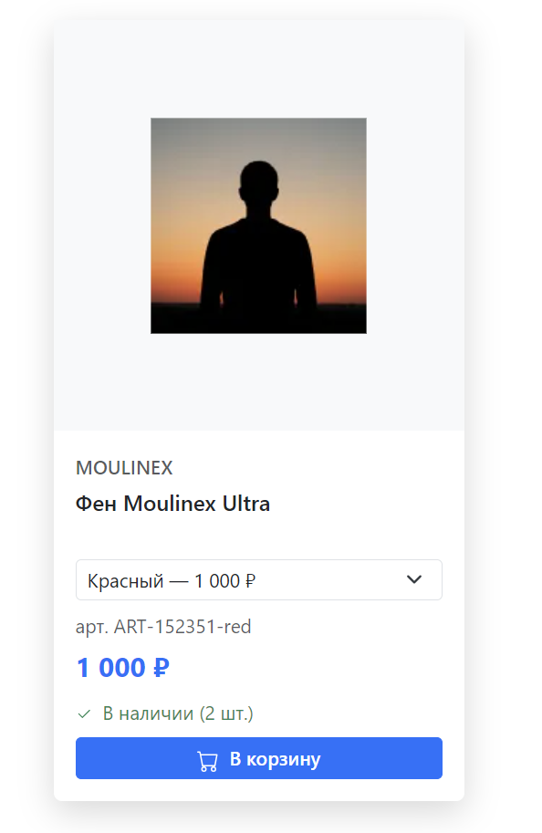 - Vue-интерфейс на вкладке товара
