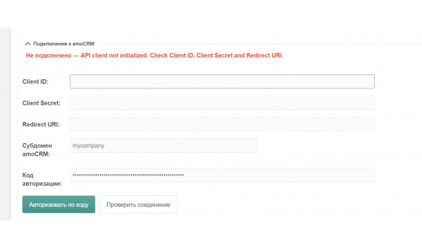 Авторизация. В AmoCRM чтобы нормально авторизоваться нужно было выполнить специальный скрипт. AmoConnector имеет визуальный интерфейс авторизации, плюс встроенную проверку соединения при каждом посещении страницы компонента.