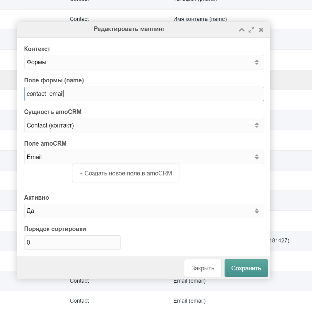 - Гибкий маппинг полей заказов и форм на поля amoCRM через CMP