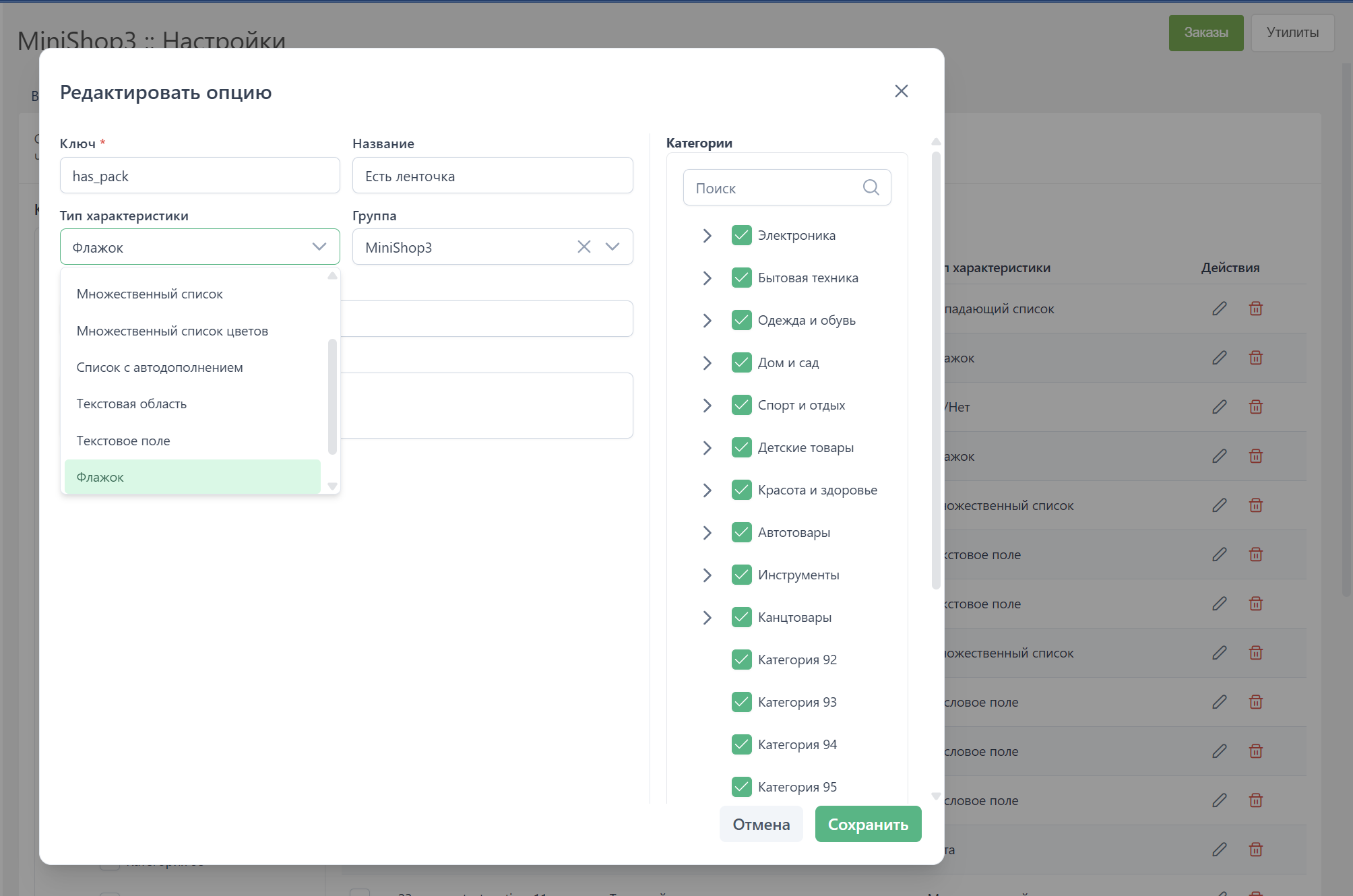 Отдельной строкой хочу отметить, что теперь для каждой категории опцию можно назвать по своему.